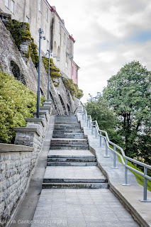 After lunch, we headed out to St. Olaf’s Church. This church has a viewing platform 60m from the ground and I was keen to check it out. Paul was dreading the stairs. The church itself has a spire that is about 125m tall. We were able to enter the church and have a look around, but climbing was 5€. It was a slow process, with 232 steps. The passage is narrow and at times the stone stairs are quite deep. There is a rope railing to help pull yourself along and a couple of flat passages where you can catch your breath and allow others to pass. Before you reach outside,there is a final wooden ladder to climb, then you are exposed to a magnificent 360 view of Tallinn. It made the climb worth it. From here you could see all of the old town, the buildings and churches we had explored and the city walls. We even spotted the ferry terminal we will depart from.